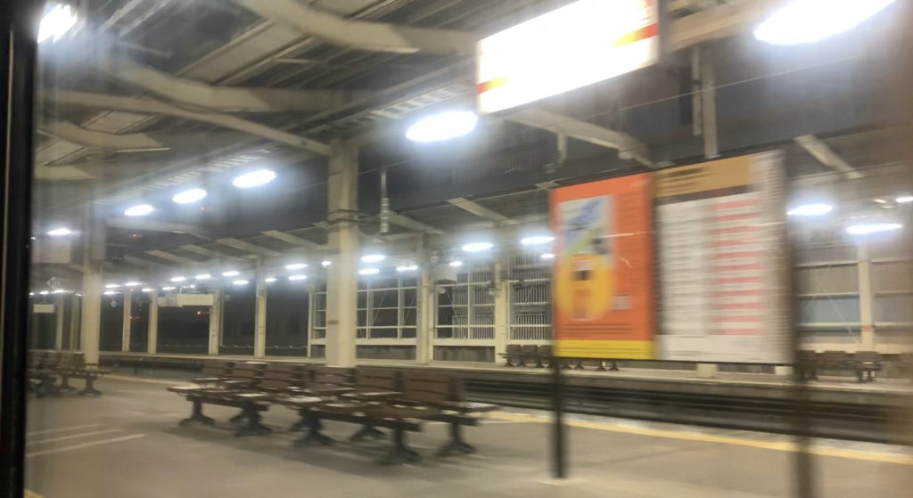 清水駅を通過。この駅は「ホームライナー」や、富士から身延線を経由し甲府まで向かう「特急ワイドビューふじかわ」など、優等列車が停車する駅の一つでもある。でもサンライズはなぜか通過する。