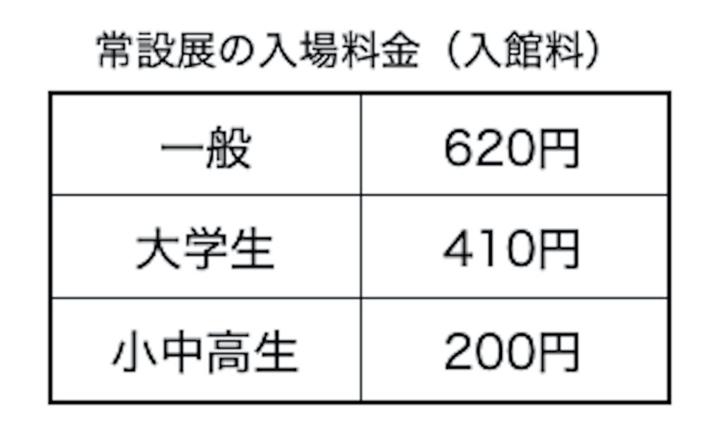 ちなみに、常設展における一人当たりの料金(入館料)はこのようになっている。20人以上の団体で入る場合、一人当たりの料金はこれより少し安くなる。