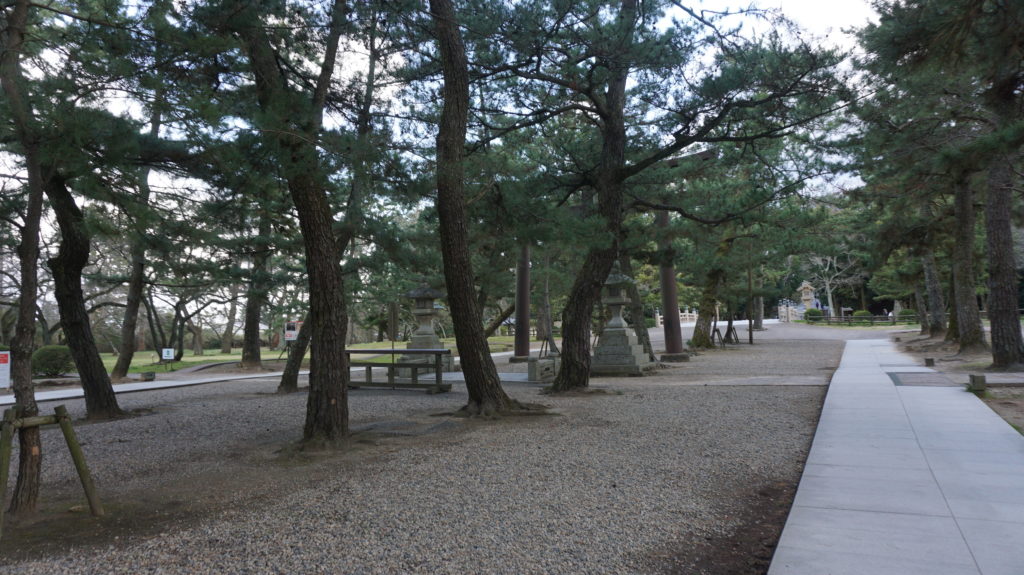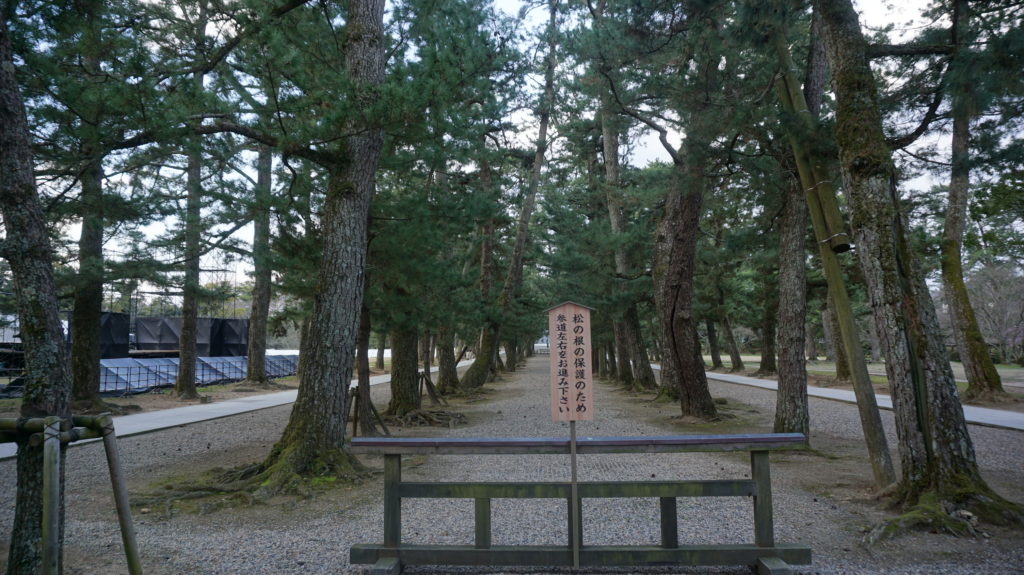 博物館もほぼ見終わったところで、そこからどうするか悩んだが、もう一度松の木の道を歩いてみることにした。本堂の広場手前の鳥居まで行き、そこから折り返して出口へと向かっていく。