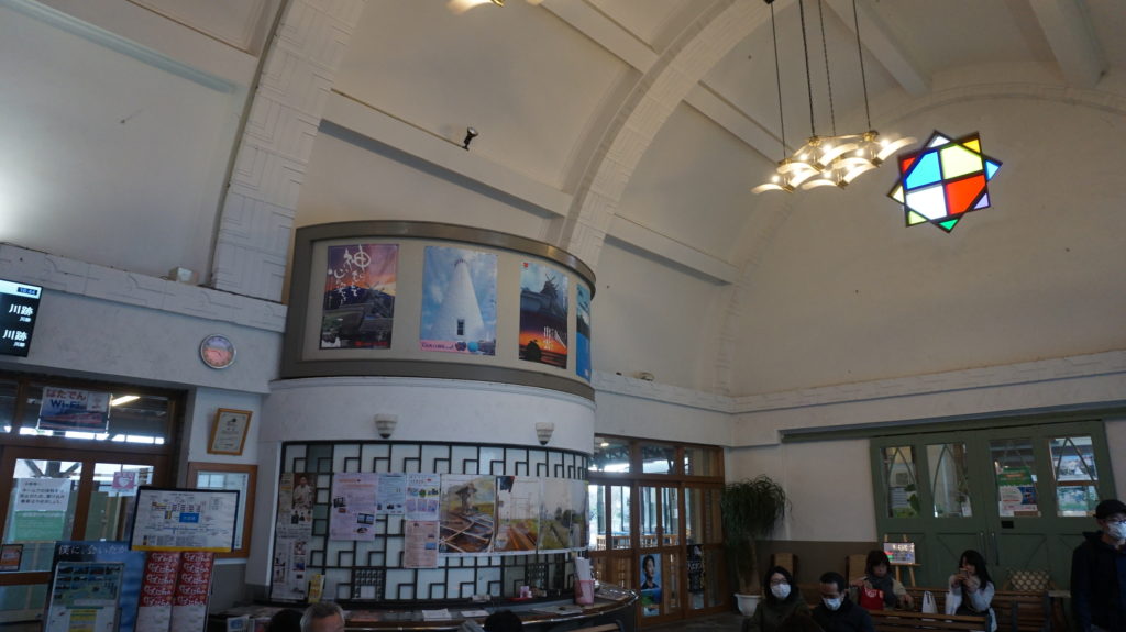 駅舎に入ってみると、天井が高いわステンドグラスがあるわで、少し神秘的なものを感じた。