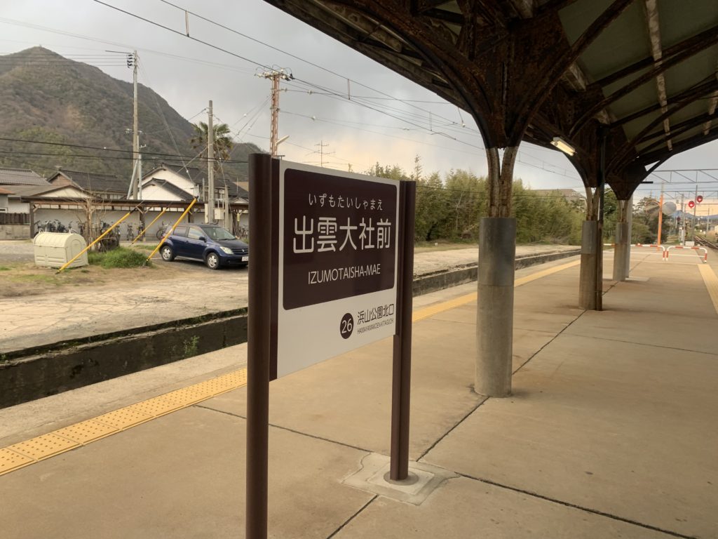 ということで、神門通りを歩いているうちに「出雲大社前駅」に着いた。